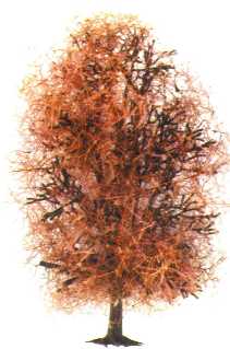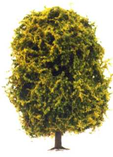 Pour terminer il faut saupoudrer sur l’arbre du flocage. Pour ma part j’utilise l’HEKI-Laub de chez HEKI ref 1560 à 1568 suivant les coloris ( vert clair 1560, vert moyen 1561, vert foncé 1562 pour 4,20 DM le paquet de 200 ml). Avant de saupoudrer il faut vaporiser de la colle en bombe (BUSCH ref 7000 ou toute bombe de colle à collage définitif vendue dans les boutiques d’arts graphiques). |